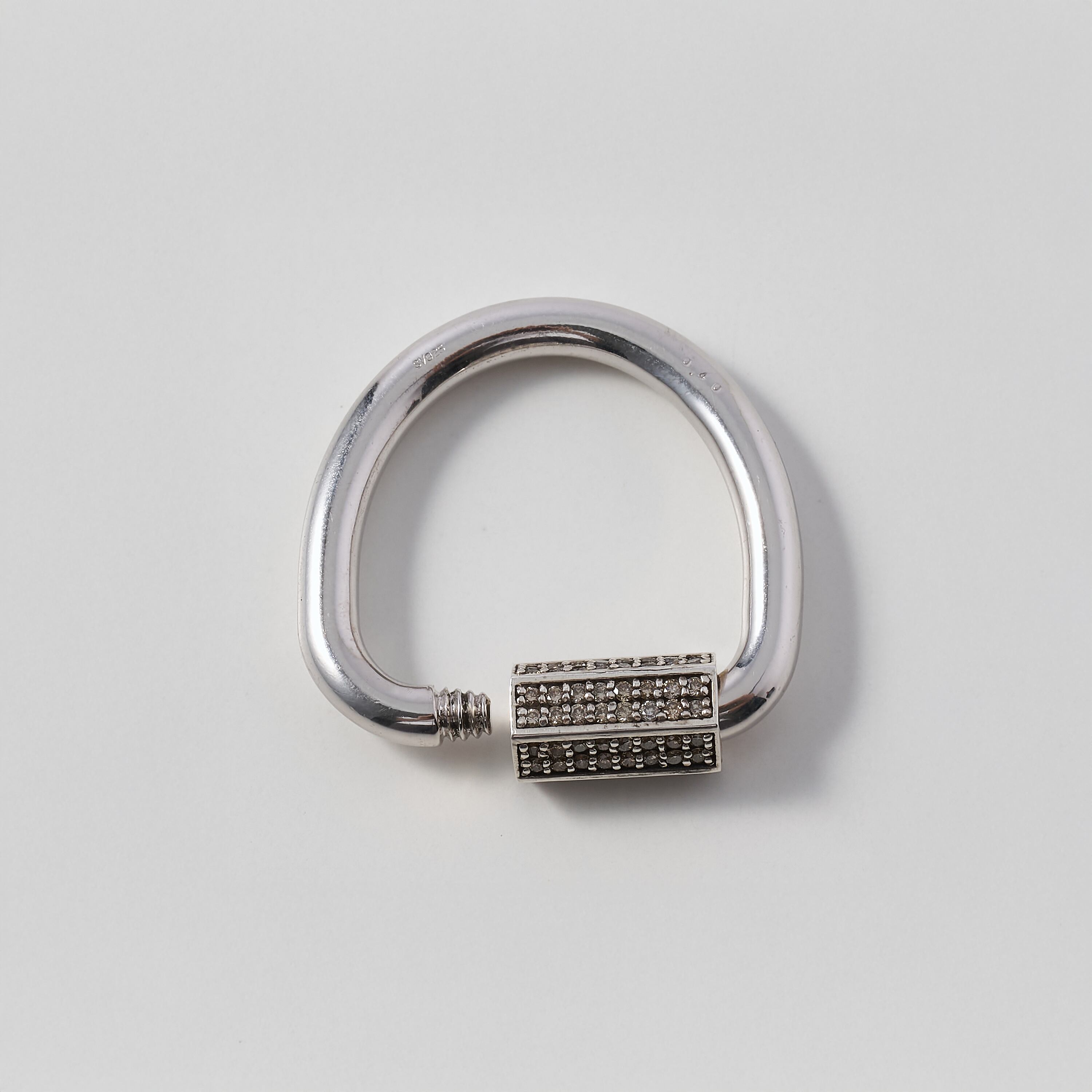 大きくてタフであることを表現したMASSIVE RINGはカラビナからインスパイアされたもの。リング中央のスクリューキャップには80石ものダイヤをセット、タフでエレガントという矛盾する個性の同居を実現させました。スクリューキャップには燻しをかけブラウンダイヤを使用することでネジが持つ特有の風合いも表現しています。