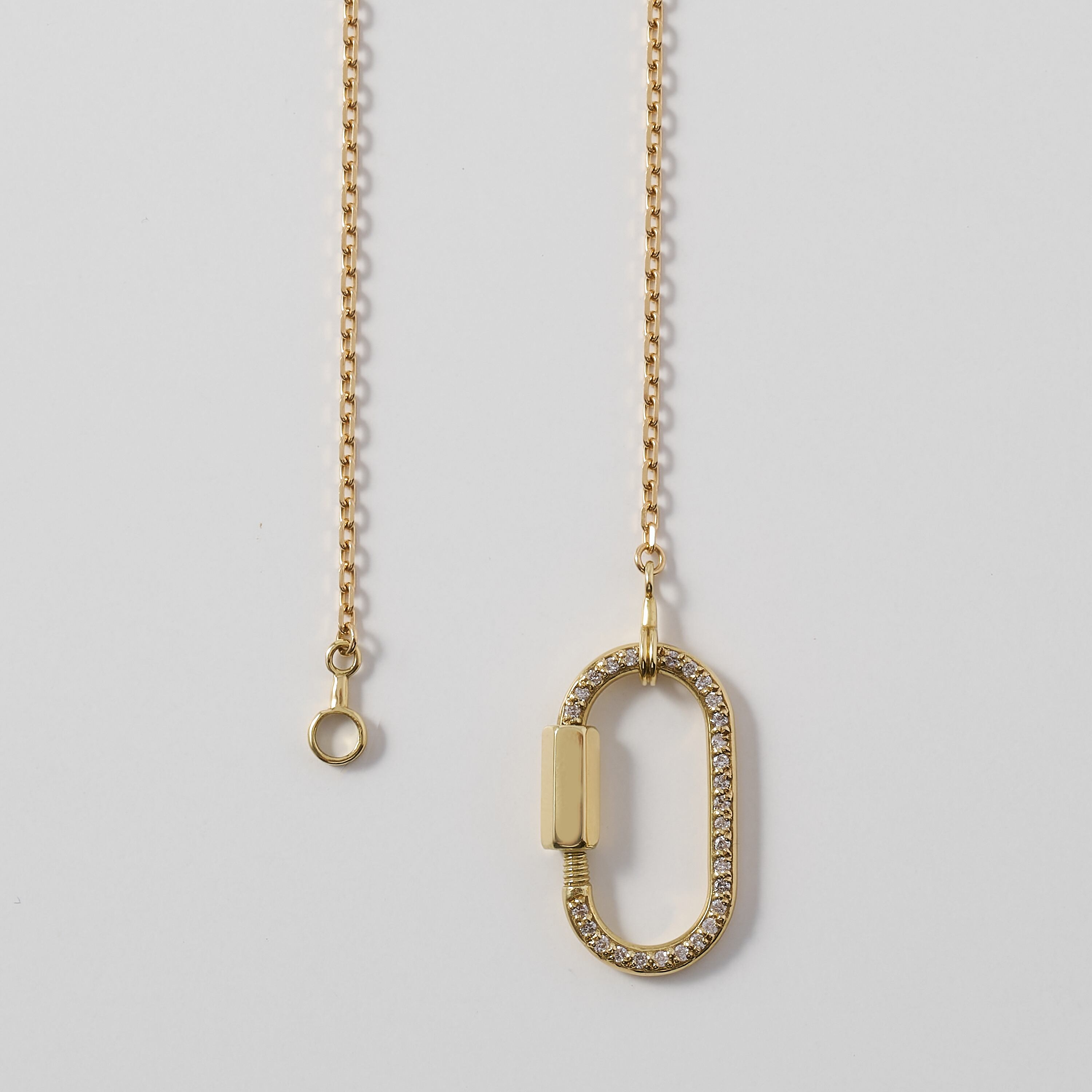 カラビナの造形美を生をかしたシンプルなネックレスは、そのままお守り代わりに身に着けたり、自身の思い出や希望、メッセージなど大切なチャームをつなぎ留めて唯一無二のネックレスに仕上げることもできます。ブランドのICONを気ままに思いのままに。